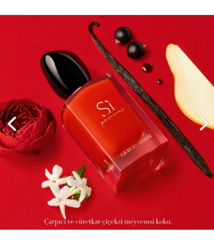 Giorgio Armani'nin cesur ve feminen kadınlar için yarattığı kadın parfümünü Sì Passione ile tutkularınızı serbest bırakmaya hazır olun. Armani'nin sembolik Sì parfümünün güçlü bir şekilde yeniden yorumlanması olan, Sì Passione, Giorgio Armani'nin kadınsı parfümlerinin kişiliğine yeni bir boyut getiriyor. Karşı konulmaz bir zarafet, güç ve bağımsızlık karışımı. Kendine güvenen bir kadın için yaratılmış, "evet" demeye cesaret eden yoğun ve eşsiz bir koku. Tutkuları vurgulayan Kırmızı bir şişeyle çevrili gerçek bir özgüven konsantresi. Sì Passione, ilk sıkıldığı andan itibaren adeta bir adrenalin patlaması gibi baharatlı pembe biber notaları ile yoğun bir tazelik ve parlaklık hissi sunuyor. Bu tutkulu açılışın ardından, yoğun ve parlak armut, kokuya daha fazla cüret vermek için ikonik sulu frenk üzümü ile bütünleşiyor. Çiçeksi kalp notaları, pembe ve kadınsı yasemin ile titreşiyor. Tutku tarafından yönlendirildiğinde inanılmaz bir güç gösteren kırılgan bir kadın gibi güçlü bir koku ortaya çıkıyor. Meyvemsi dokusu bu kokuyu bağımlılık hissi katıyor ve eğlenmek için gerçek bir tutku daveti oluşturuyor. Yüzlerce denemeden sonra Giorgio Armani, parlak kırmızı lake şişeyi mükemmelleştirdi ve bu parfümü tutkuları ile yaşayan cesur kadınlar için mükemmel bir hediye haline getirdi. Armani Beauty’nin ikonik likit mat ruju Lip Maestro 400 numara ile kombinleyebilirsiniz.