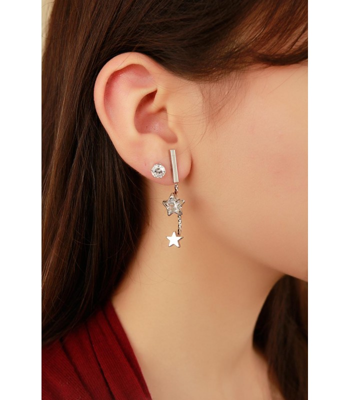 Gri Renk Tasarımlı Yıldız Figürlü Bayan Sallantı Küpe