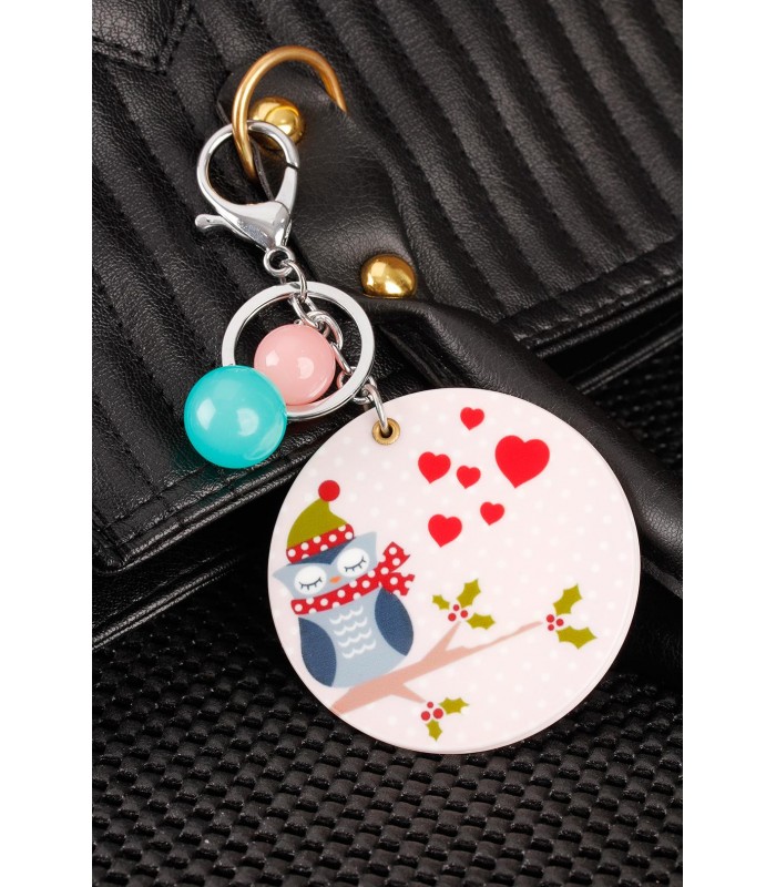 Renkli Baykuş Figür Desenli Aynalı Anahtarlık