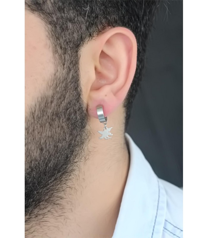 Şıklığınıza Silver Renk Kaplama Kartal Figürlü Çelik Kıstırmalı Erkek Küpe ile şıklık katın.