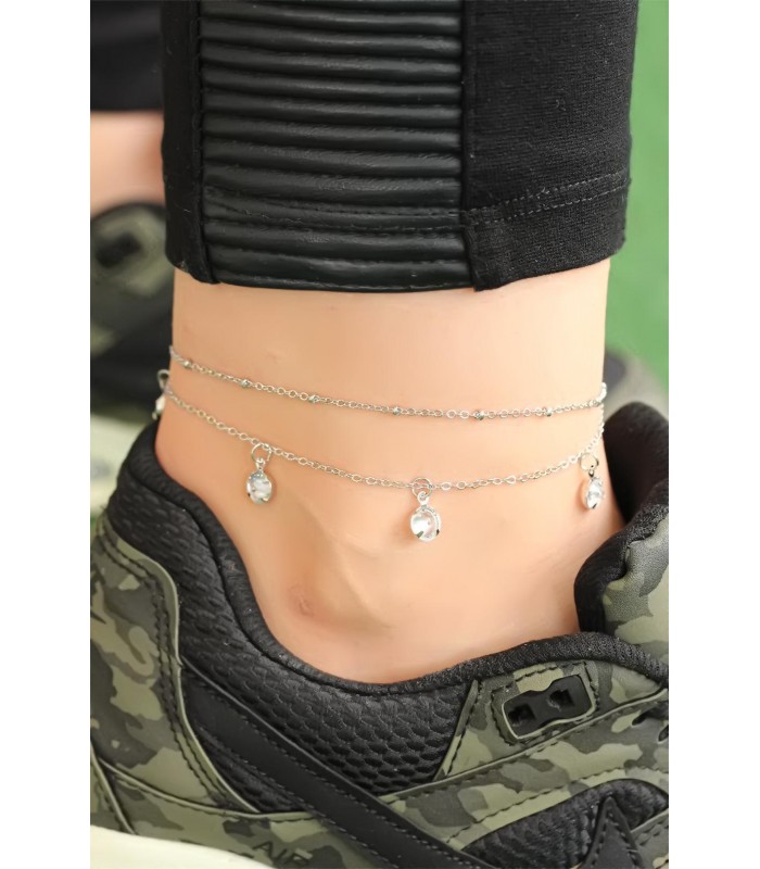 Şıklığınıza Silver Renk Kristal Taşlı Zincirli Tasarım Hal Hal ile harika bir görünüm katın.