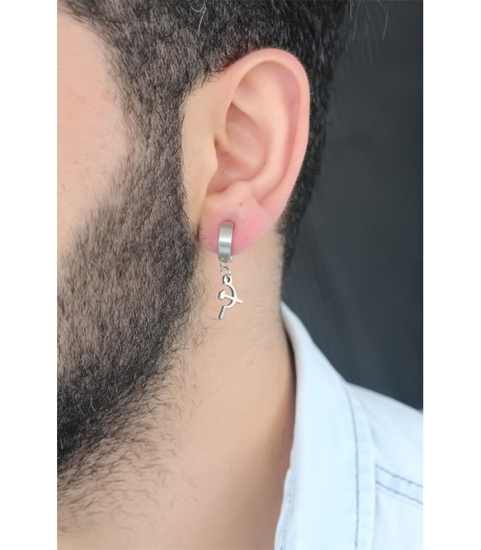 Siver Renk Kaplama Yay Figürlü Çelik Kıstırmalı Erkek Küpe