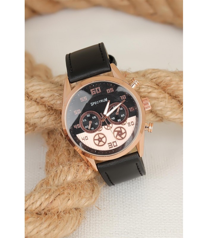 Siyah Deri Kordonlu Rose Renk Spor Metal Kasa Erkek Kol Saati