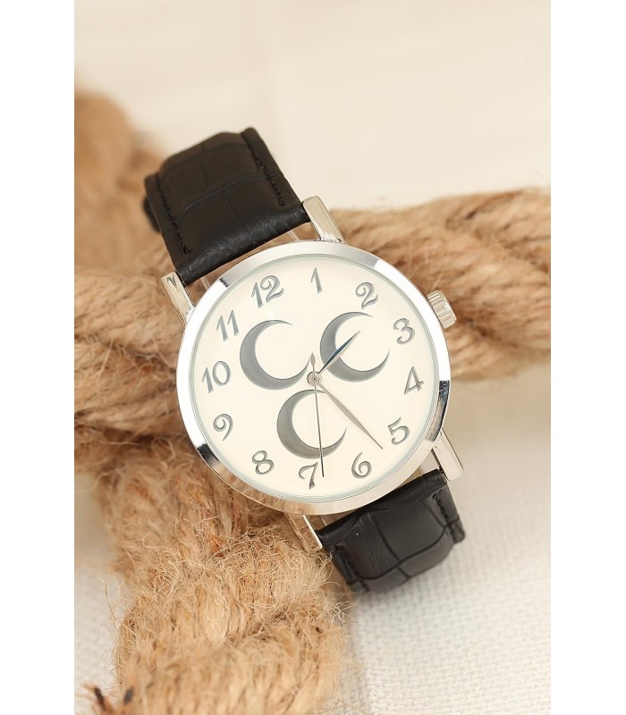 Sezonun en şık erkeği Siyah Deri Kordonlu Silver Renk Metal Kasa 3 Hilal Erkek Saat ile siz olacaksınız.