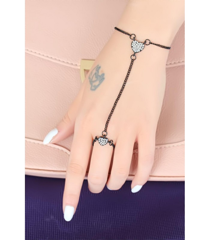 Modern şık olmak için Siyah Renk Kaplama Zirkon Taşlı Kalp Figürlü Şahmeran Bileklik modelini tercih edin.