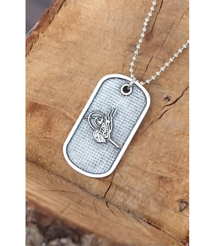 Top Zincirli Osmanlı Tuğrası Tasarım Eskitme Gümüş Renk Kolye