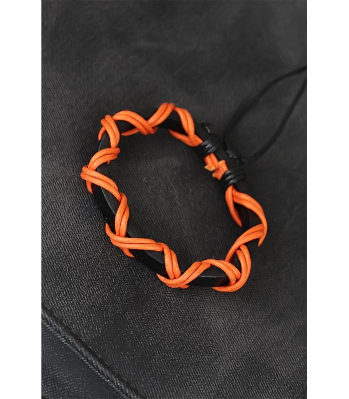 Enerji dolu kombinlerinizi Turuncu İpli Siyah Renk Deri Erkek Bileklik ile detaylandırın.