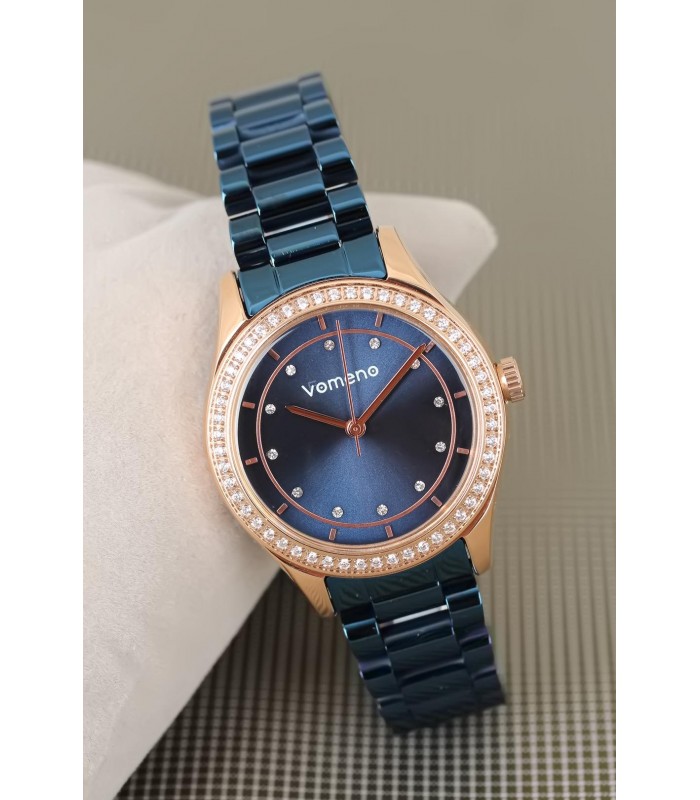 Vomeno Marka 2 Yıl Garantili Lacivert Renk Metal Kordon Taşlı Kasa Bayan Kol Saati
