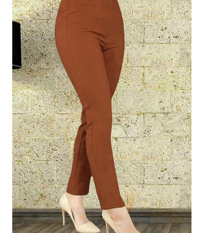 Yeni Sezon Likralı Kumaş Pantalon -Kiremit