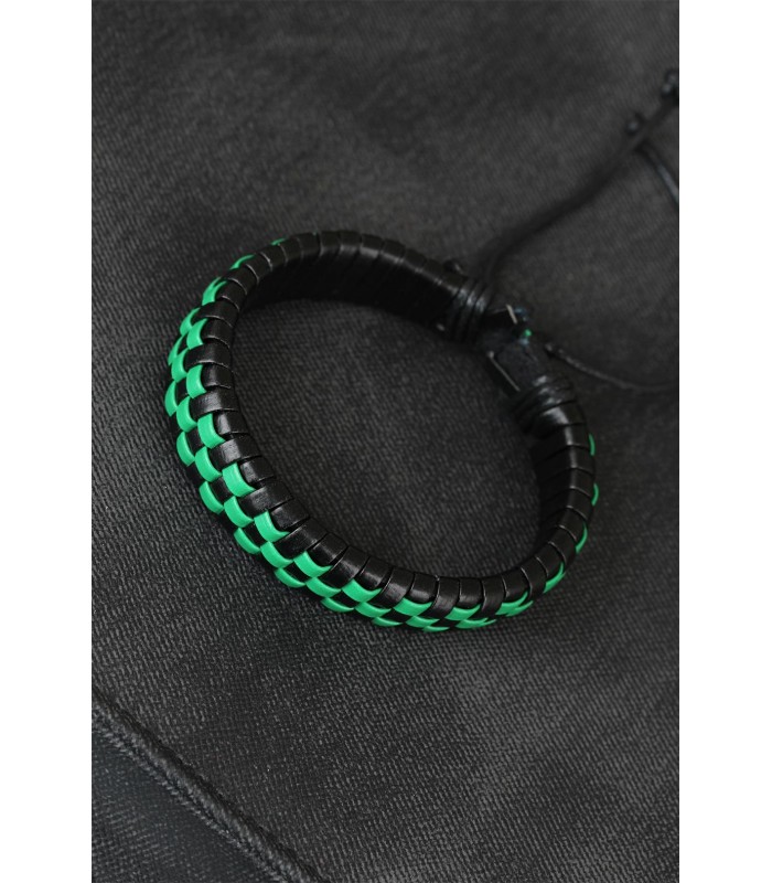 Yeşil Dama Desenli Siyah Renk Deri Erkek Bileklik
