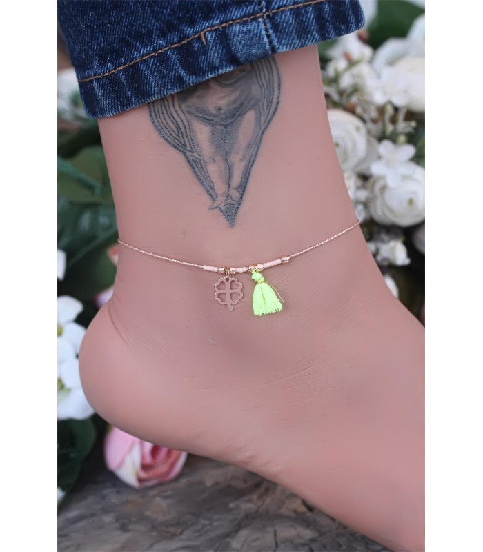 Yeşil renk püsküllü bronz renk metal Yonca Figürlü Yeni Sezon Hal Hal