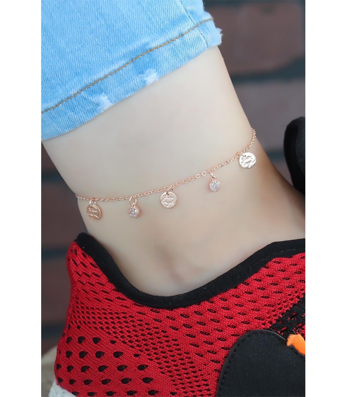 Zirkon Taşlı Çift Zincirli Rose Kaplama Metal Aksesuarlı Hal Hal