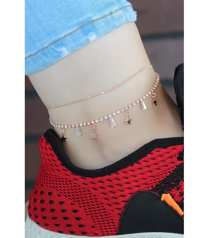 Günlük kombinlerinizde Zirkon Taşlı Çift Zincirli Rose Kaplama Yıldızlı Hal Hal modeli ile bir yıldız gibi parlayın.