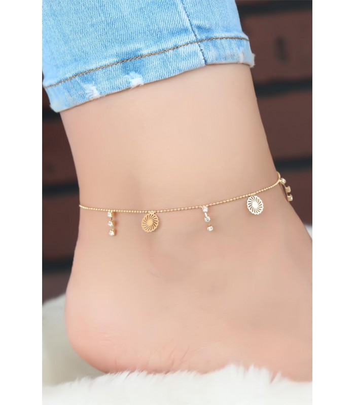 Klasik tarzınızı Zirkon Taşlı Gold Zincir Halhal öne çıkarın.