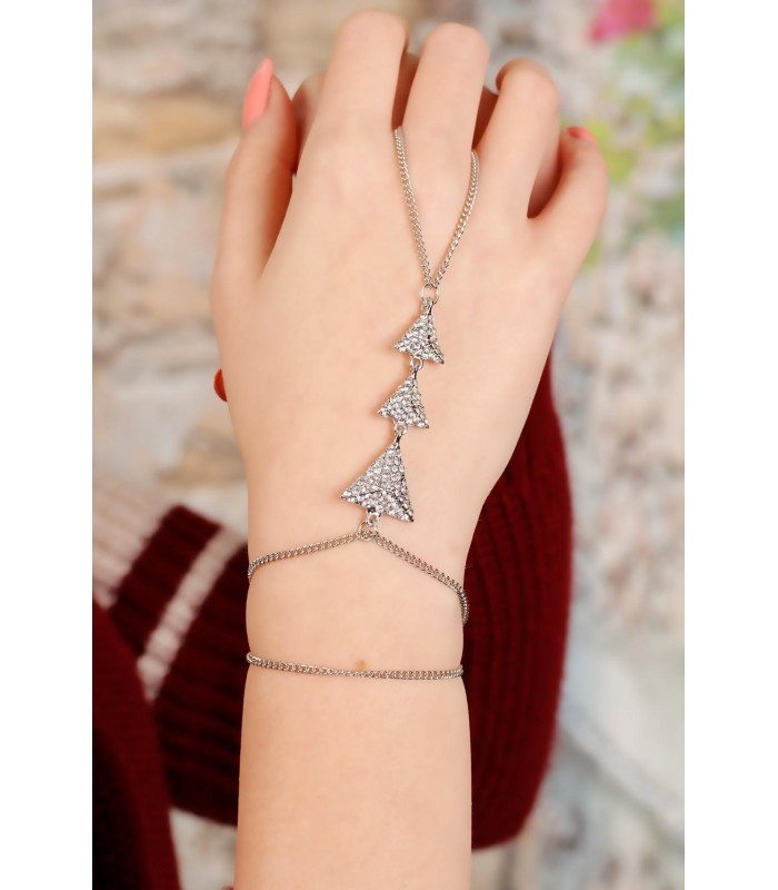 Zirkon Taşlı Gri Renk Metal Bayan Şahmeran