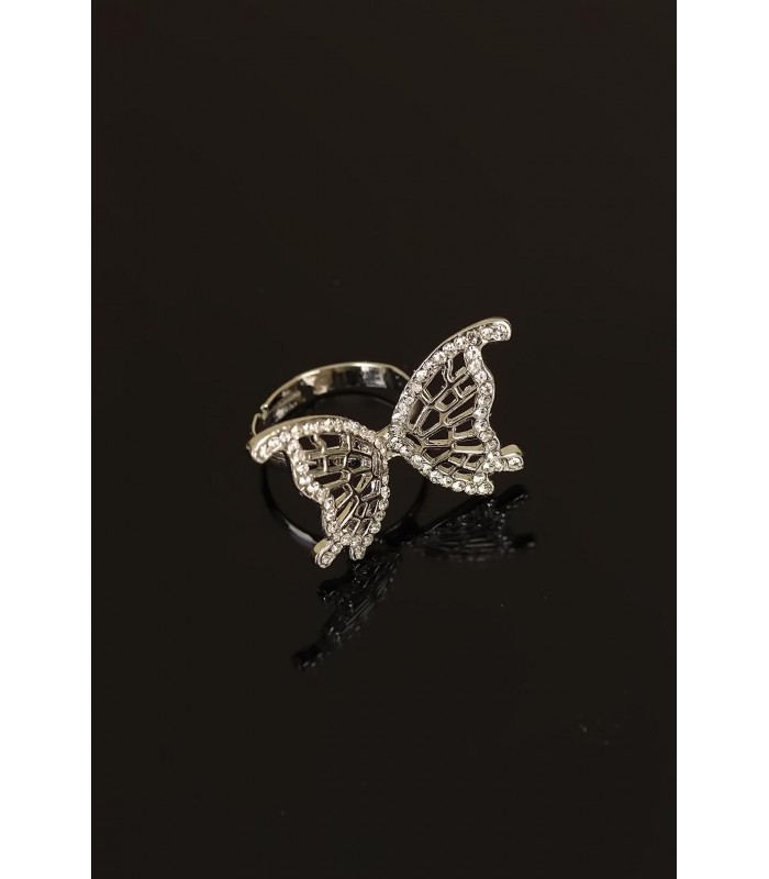 Zirkon Taşlı Silver Renk Metal Kelebek Bayan Yüzük